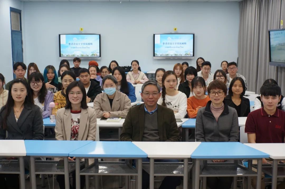 此次讲座持续约一个半小时,在同学们热情的掌声中圆满落幕,全体泰语系师生与陆生教授合影留念。
