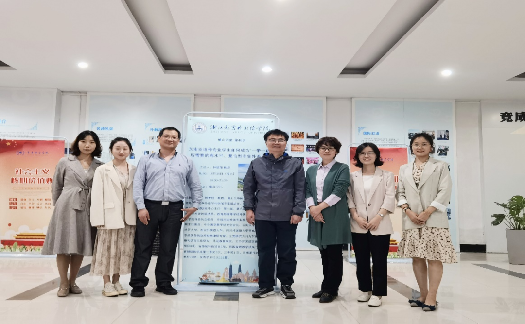 此次讲座持续约两个小时,在同学们热烈的掌声中圆满落幕,泰语系及印尼语系教师与钟智翔教授合影留念。