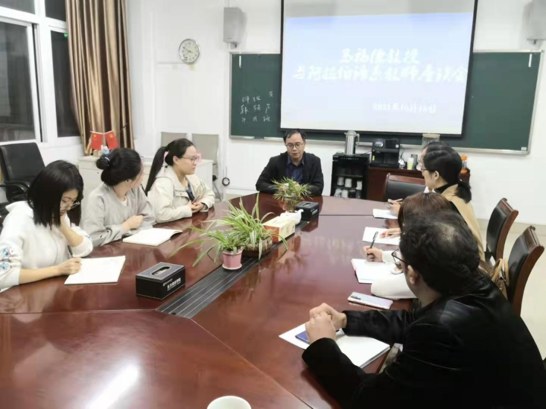 马福德院长首先在我院330会议室与阿拉伯语系各位教师展开了交流。就老师们提出的阿拉伯语教学过程中易出现的语音语调差异性、青年教师的科研方向等问题,马院长做出了细致而具体的回复。