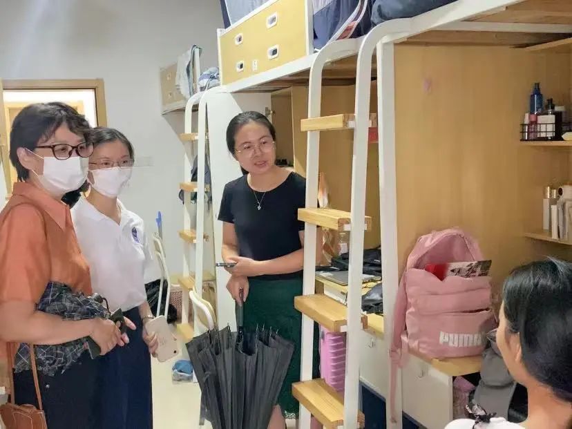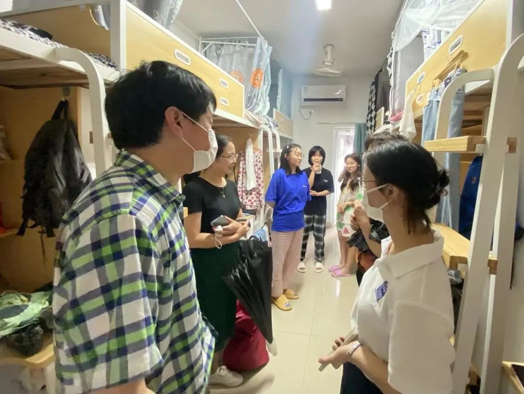 9月12日下午3时,党委书记史进副教授、副院长易朝晖教授、党委副书记王丽娜副教授等一行走访了2022级新生寝室,与学生亲切交谈,了解新生情况,传递学校的温暖与关怀。