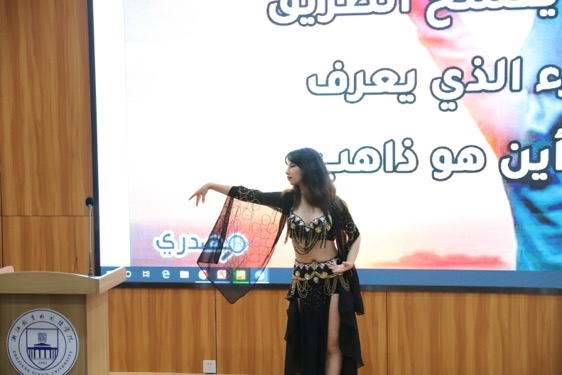 会议一开始,阿语系外教穆罕默德博士用阿语向新生致辞,浑厚的阿语发音表达了自己对新生的热烈欢迎和殷切祝福。之后,外教与阿语系2002班的高哈佳同学为新生展现了一段埃及传统歌舞表演,穆罕默德博士演唱的歌曲和高哈佳同学表演的舞蹈为大家展现出浓浓的异域风情,赢得了大家热烈的掌声。