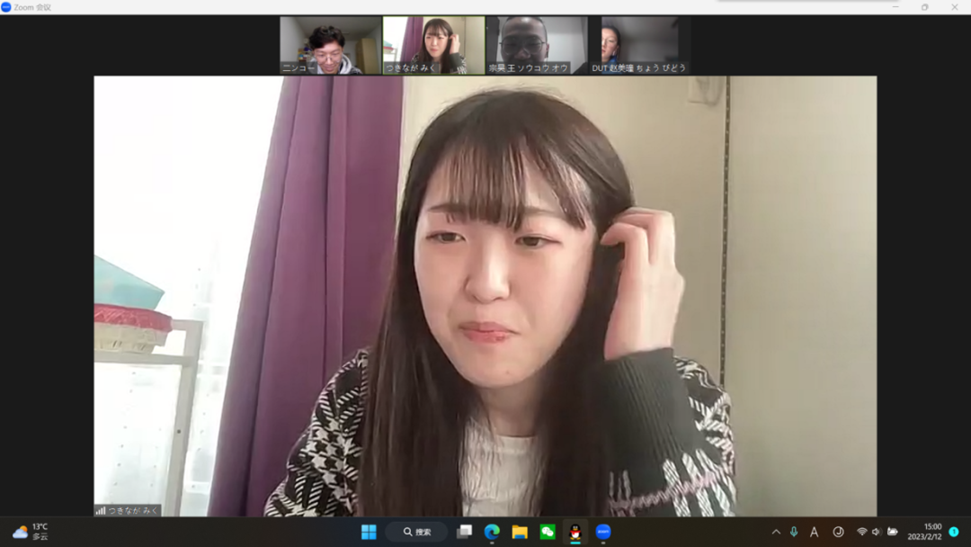 线上交流会是一个媒介,让我们能够同日本学生共同交流,体验不一样的文化。我在这次交流会上结识了一位日本朋友,线下我们也都有进行聊天和沟通。这样不仅能提升我的日语水平,还能让我了解到日本的人文风情。今后我仍然会多多参与此类活动!