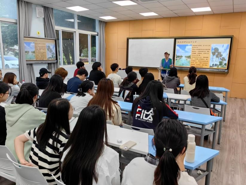 首先,马老师介绍了秋季赴埃及留学的两座合作高校,就两所高校的发展历程、师资力量、学科与专业设置、留学生规模、学费与住宿费和学习生活环境等做了重点介绍,同时,介绍了埃及厚重的文化底蕴,鼓励同学们在留学期间多多体验当地的风土人情,理论与实践并重,丰富自己的人生经历,并就学生普遍关心的话题,进行了深入解析。