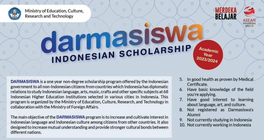 好事成双!5月23日,印尼文化教育部公布了2023-2024年度印尼国家奖学金(Darmasiswa)获奖名单,经过印尼文教部组织的面试和遴选,东语学院印尼语系2021级黄玉娴、谢佳宏、徐媛媛、刘茂盛、林卓妍、康之易、吴欣悦等七位同学在全国各高校的报名者脱颖而出,获得了全国共27个名额中的7个,下学期开始将免学费且享受每月生活补助赴印尼留学一年。