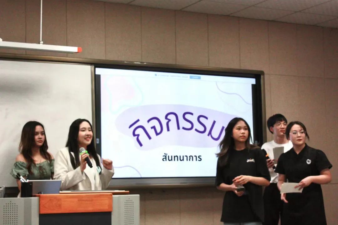 6月9日下午,东方语言学院泰语系在F146智慧教室举办了第四届中泰学生交流活动。本次活动邀请到五名来自浙江大学的泰国留学生,与泰语专业各年级学生展开交流互动。活动由泰语专业大三年级学生策划,泰语系外教朱云涛老师指导。