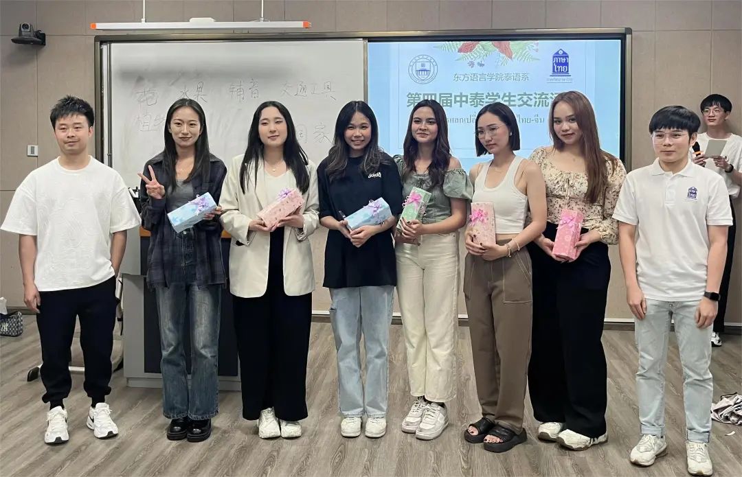 小组自由交流环节,泰语专业同学与泰国留学生们开展了热情的交流。一番愉悦地交谈和互动,既锻炼了泰语口语技能又增进了友谊。活动的最后,作为东道主的我们,为泰国朋友们送上了精心准备的小礼品。