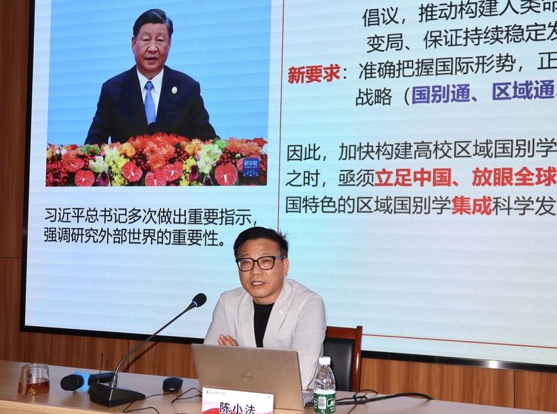 为进一步推动我校区域国别学建设,夯实发展基础,明确发展目标,制定发展计划,2024年4月25日下午,东方语言学院特邀请湖南师范大学外国语学院“潇湘学者”特聘教授陈小法老师作题为“区域国别学视域下浙江的东亚研究”的学术讲座。本次讲座由东方语言学院副院长马小明主持,东方语言学院院长邱鸣教授、副院长胡燕静以及各系师生参加了讲座。