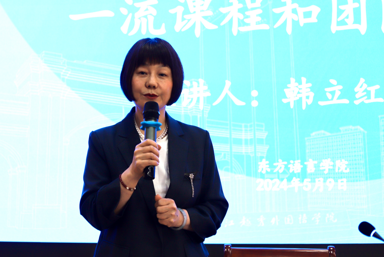 2024年5月9日下午,应我院邀请,教育部高等学校外国语言文学类专业教学指导委员会日语分委员会委员,教育部“日本社会与历史文化课程虚拟教研室”带头人,国家级一流本科课程“日本文化概论”主讲人,中华日本哲学会副会长,南开大学日语系主任韩立红教授在F225报告厅为我院教师作题为“南开大学日语专业一流课程和团队建设”的专题讲座。本次讲座由东方语言学院副院长胡燕静主持,东方语言学院院长邱鸣教授、副院长马小明以及我院部分教师参加了讲座。