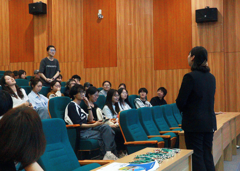 在答疑环节,成老师耐心地解答了同学们提出的疑问,就学生们感兴趣的京畿大学校园文化活动、校庆庆典、学校特色课程等问题一一进行解答。另外,她还强调学生们在参加了京畿大学与我校共同合作的2+2双学位项目后,如今后继续选择在京畿大学读硕,学校将会为我校学生组建留学生代表团并配备一对一结对的韩国学生提供相应的帮助。