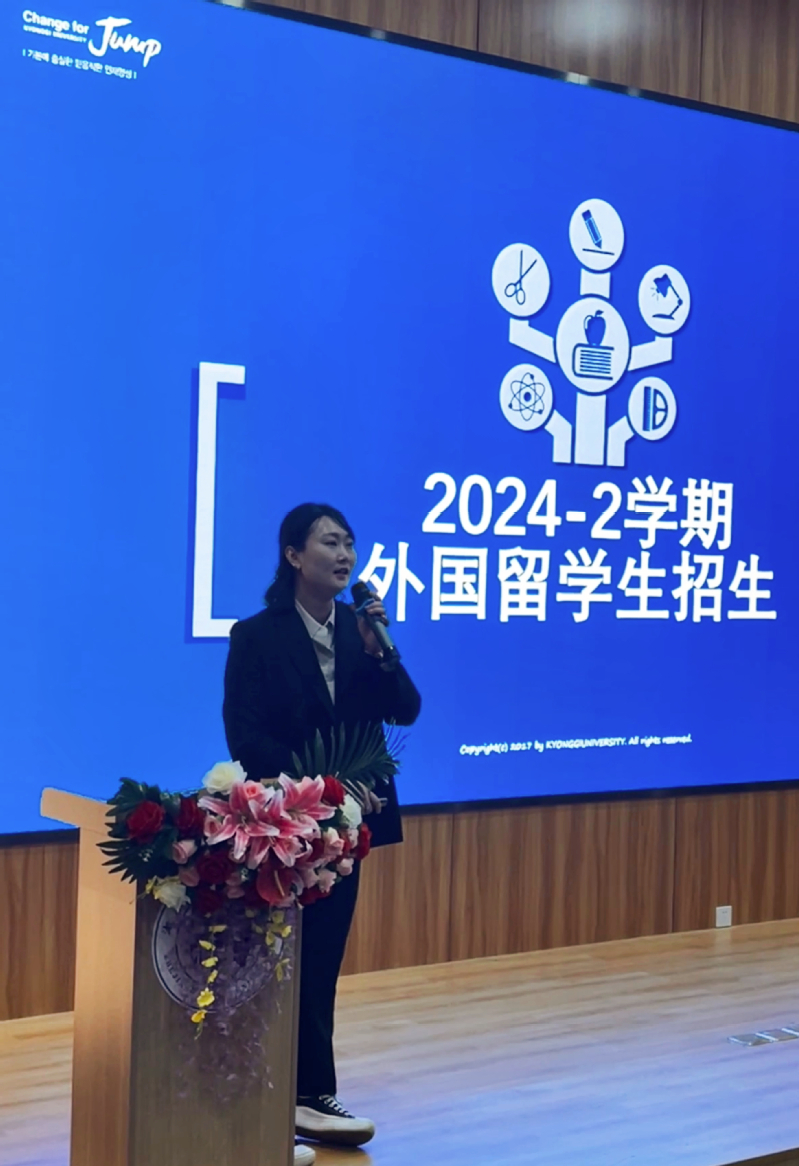 2024年5月21日晚,韩国京畿大学留学宣讲会在东方语言学院F225举行。韩国京畿大学国际交流处成恩呈老师、韩语系许赛老师、高如云老师及韩语系2022、2023级的部分学生参加了此次宣讲会。