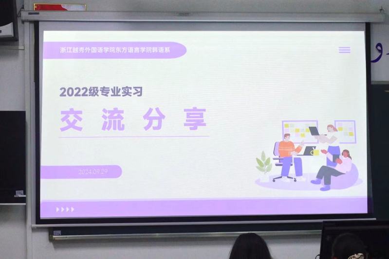 2024年9月29日晚,朝鲜语2022级专业实习交流分享会在F322举行,朝鲜语2022级优秀实习生代表及2022级、2023级各班代表参加了此次交流分享会。本次交流会由高如云老师主持。
