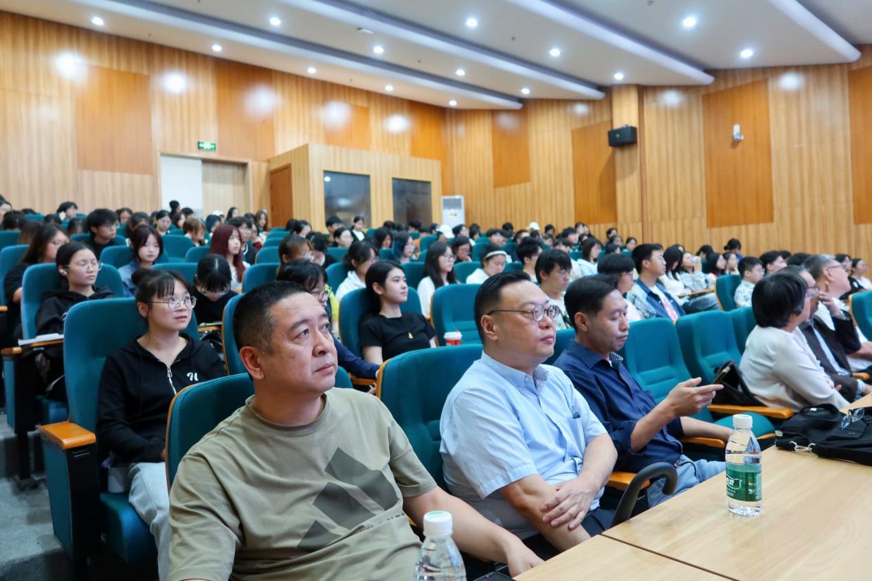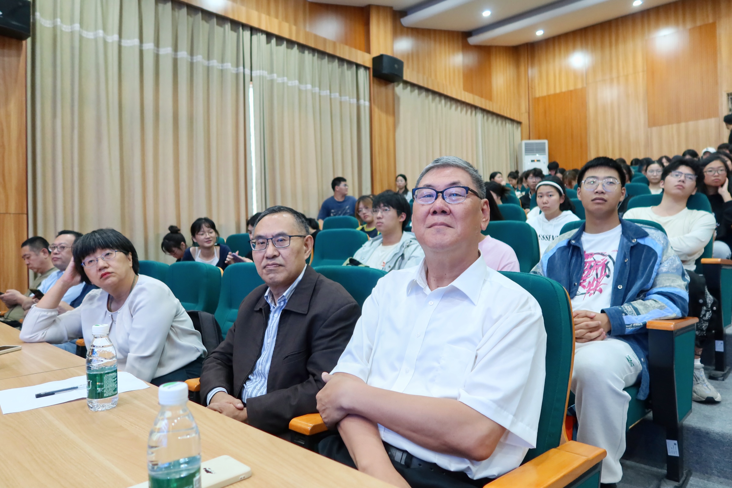 最后,学院院长邱鸣教授上台讲话,邱院长表示自己也受到很大启发,他总结说:“要把自己的阅历游历和知识结合起来,充分运用好“四力”和“四历”。走好跨文化翻译的道,以“信达雅”为灯塔,以实践为基础,忘其形,化其意。”