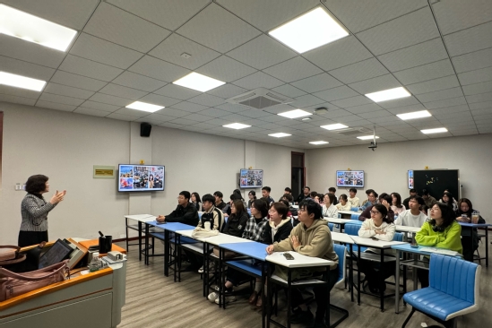 会谈结束后,东亚大学两位老师面向同学们举行了国际交流项目宣讲会。宣讲会由日语系副主任钟一沁老师主持,2022、2023、2024级学生代表,以及国际化人才班共30余名学生参加。