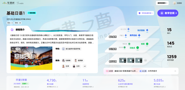 《基础日语1》是日语专业基础阶段的核心课程,依托我校日语国家级一流本科专业建设点,秉持“思政教育为核心、成果产出为导向、学用一体”的教学理念,提升学生的自主学习能力、语言基础应用能力、初级跨文化交际理解能力、团队协作能力,有效助力学生“讲好中国故事、传播中国声音”。