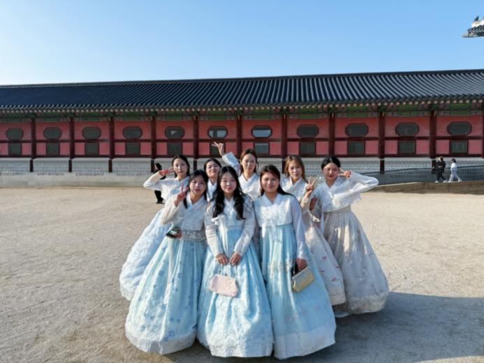 这里的上课方式很灵活,课堂讨论、小组展示和交流活动特别多,不再只是坐在下面听讲,更多要自己主动思考、和同学合作完成任务。刚开始我还有点不适应这种自主学习的模式,有点不知道从哪里下手。学校还专门组织我们外国留学生一起穿韩服去景福宫游玩,在感受传统魅力的同时,也让我更快融入了这里的生活。
